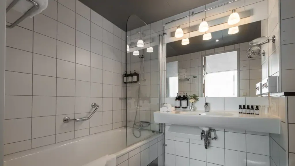 - Amenities: Alarm Clock, Bathtub, Coffee and tea facilities, Fridge, Full-length Mirror, Iron and ironing board, Luggage Rack, Safe