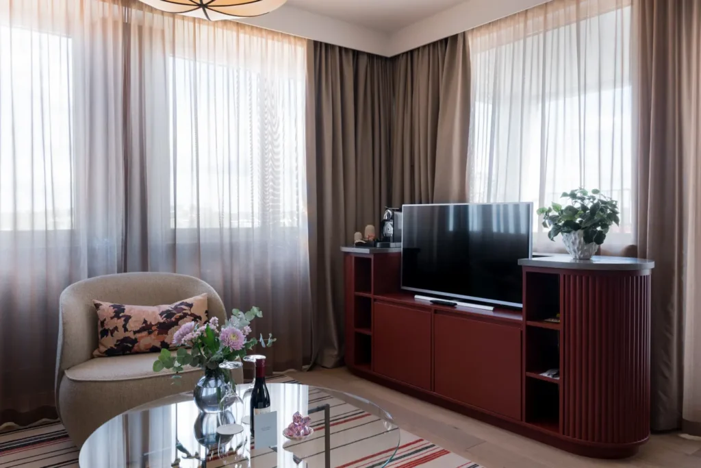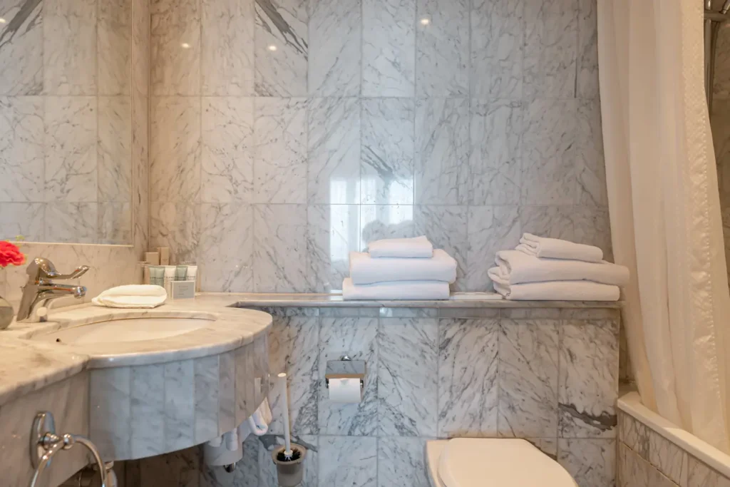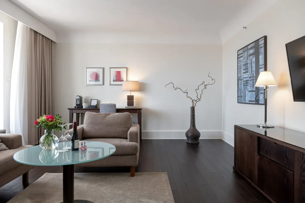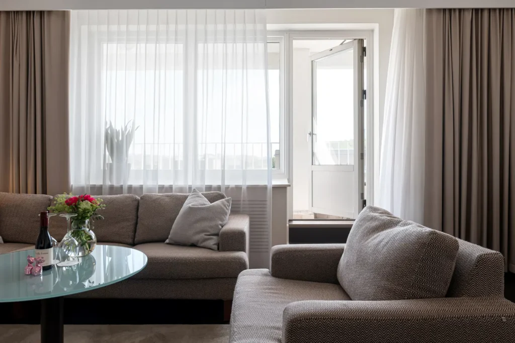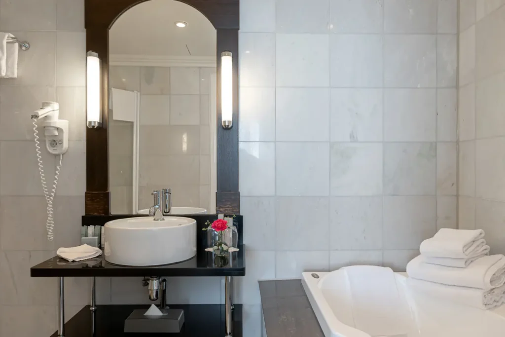 Our beautiful Suites provide a unique hotel experience with pleasing decor. There is lots of space with elegant furniture and in some suites, a balcony. The bedroom is furnished with a comfortable double bed and decor in warm colors. The stylish bathroom comes with a shower and a bath and is equipped with dental and shaving kits.