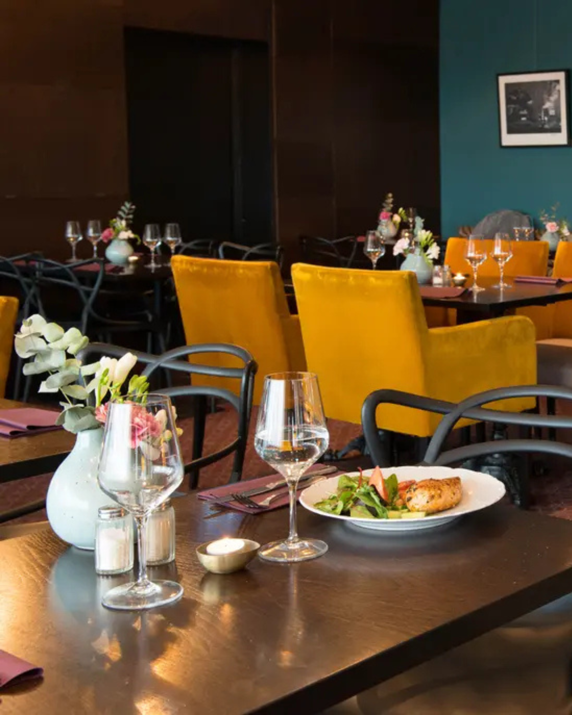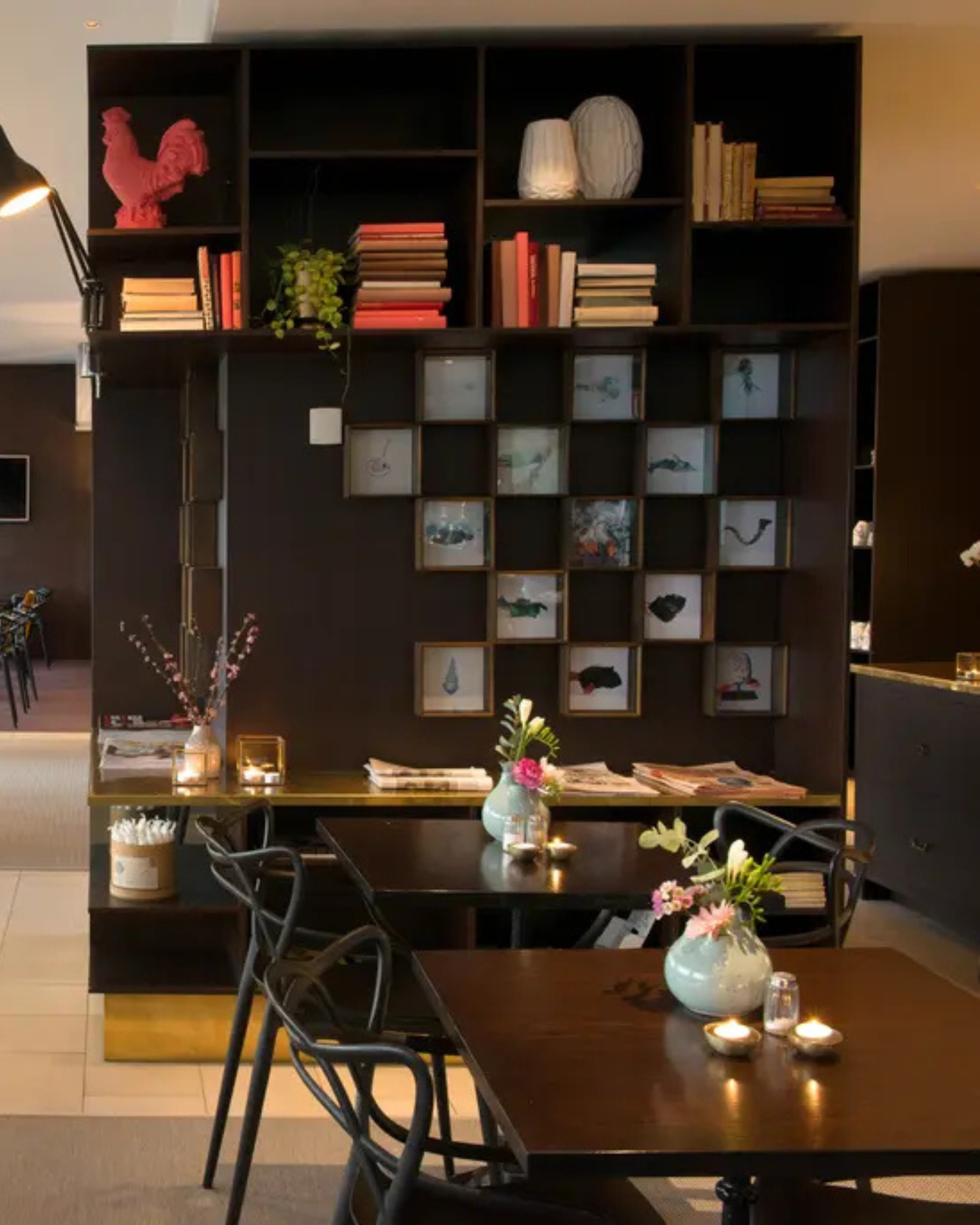 The atmosphere here is relaxed. Our hotel rooms are decorated in pale Scandinavian colors and on the top floor of the hotel. We serve breakfast in the morning, and during the evenings our food bar is open.