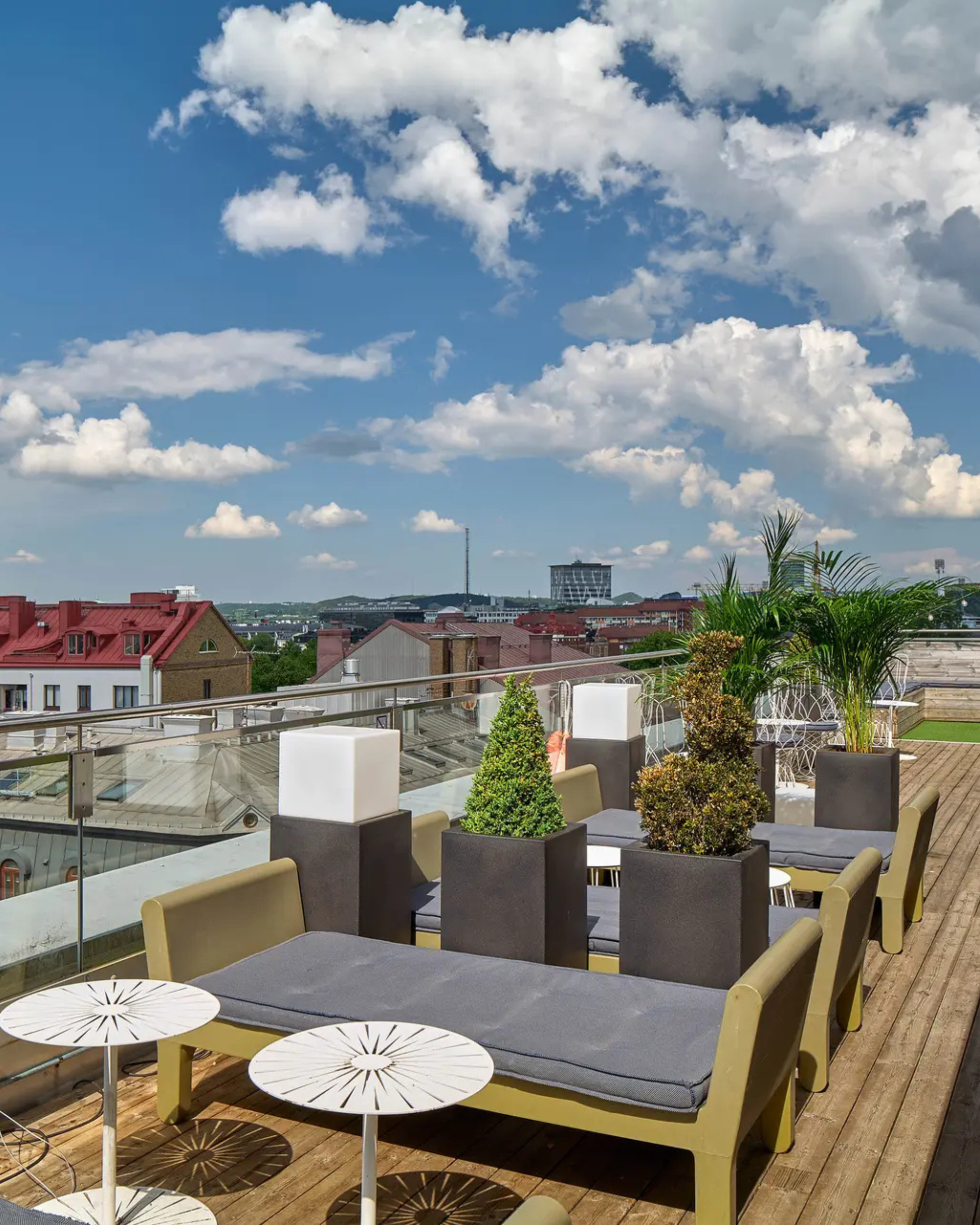 Stay right in the center of the action. Our 292 hotel rooms range from smaller cozy rooms to suites with magnificent views of Gothenburg. Stay fit in our well-equipped gym or relax in the sauna—perfect location for your sightseeing tour. Restaurant Ruby is a meeting point for both locals and hotel guests with its bistro atmosphere, greenery, industrial details, and timeless materials. The kitchen offers a menu with a Nordic touch. Between April and October, our open-air restaurant is open facing Avenyn. During the summer, you can enjoy refreshing drinks and a stunning view over the rooftops from our Rooftop bar on the 7th floor. We have a floor with its own terrace, dedicated to meetings and events for up to 180 people. Up here, you have your own private boule court. Our relaxation suite has a sauna where you can unwind, or if you prefer, you can work out in our gym.
